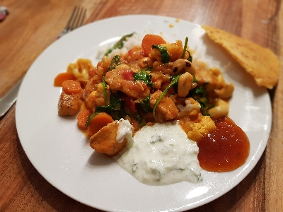 | Hühnercurry | mit Raita, Naan, Reis, Mangochutnay | edit | del |