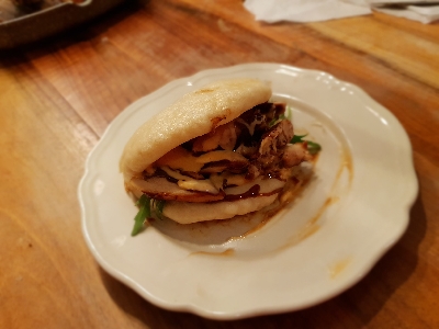 | Bao Bun | mit ausgelöster Hühnerkeule oder vegetarisch | edit | del |