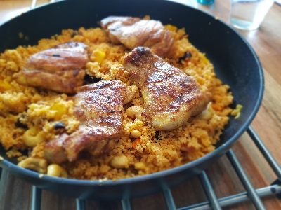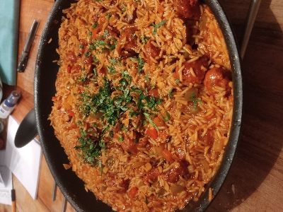 | Paella bzw. Reispfanne | mit Hühneroberkeulen und/oder Fisch, Garnelen | edit | del |