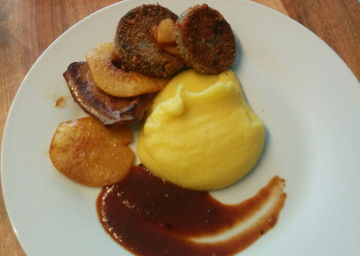 | Himmel und Erd - reloaded | panierte Blunzen, Erdäpfelpüree und karamellisierter Apfel | edit | del |