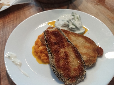 | panierte Melanzzani mit Karottenpüree | | edit | del |